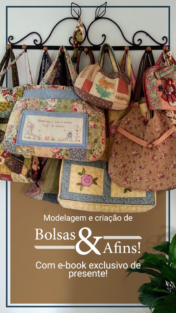 Com o kit, você também ganha ACESSO VITALÍCIO ao curso Bolsas & Afins: Criação e Modelagem, com e-book com dezenas de projetos de bolsas e muuuuito conteúdo pra você fazer outras peças ou até aprender a criar suas próprias bolsas, nécessaires e… afins 😄