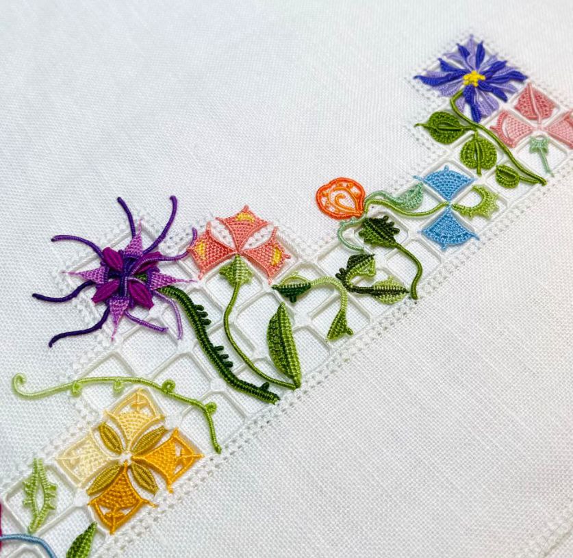 Transformar um simples pano de prato numa peça cheia de requinte e delicada agora está ao seu alcance, com uma Bainha Aberta com técnicas de Bordado Renda de Agulha da Itália: o Reticello.